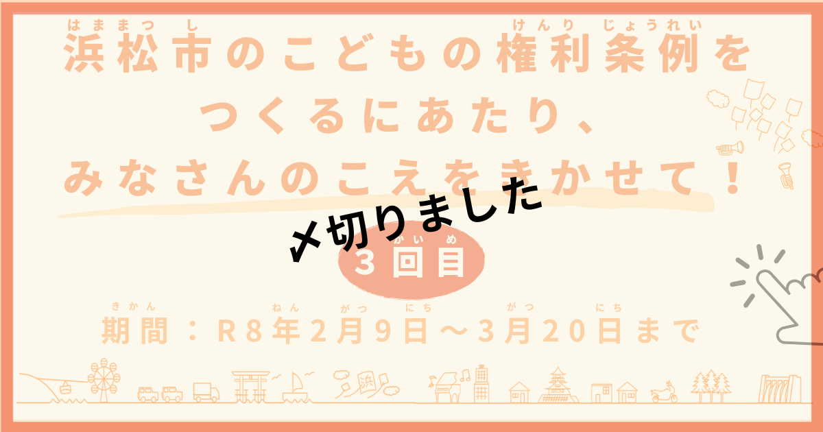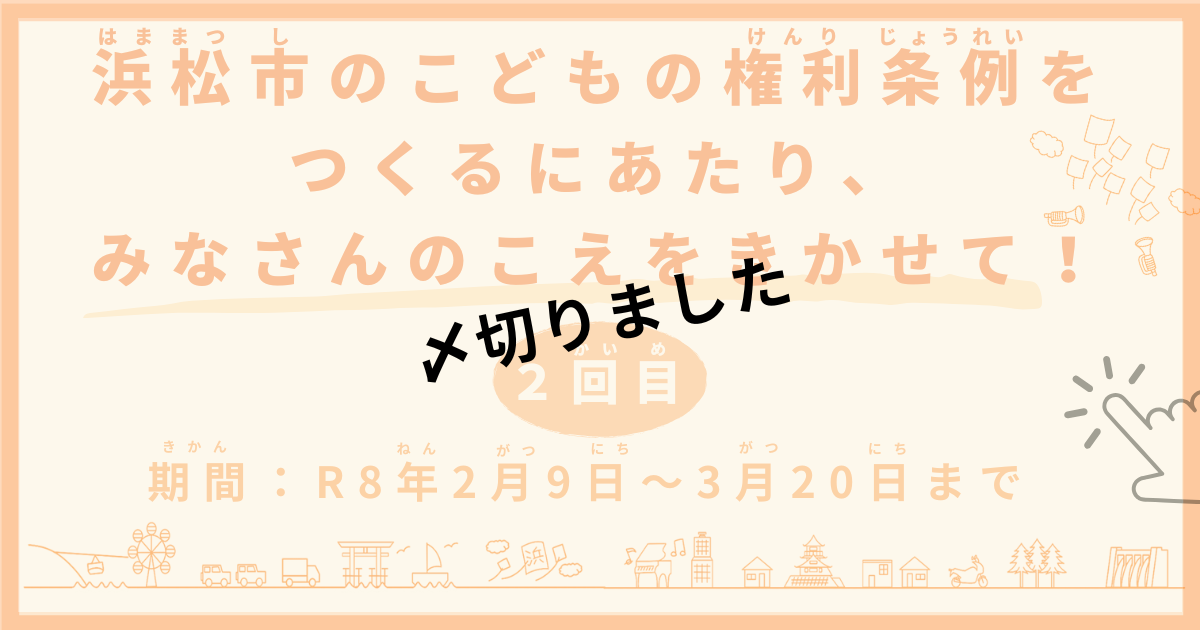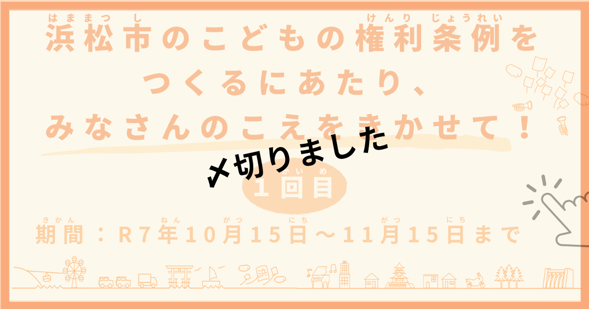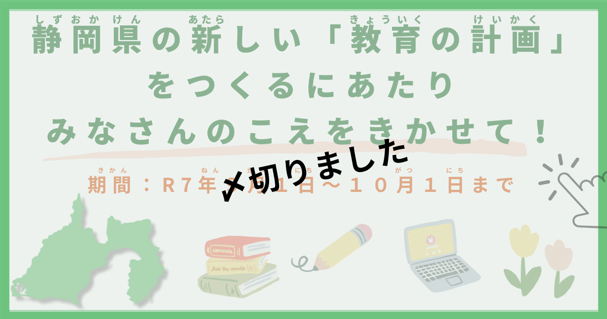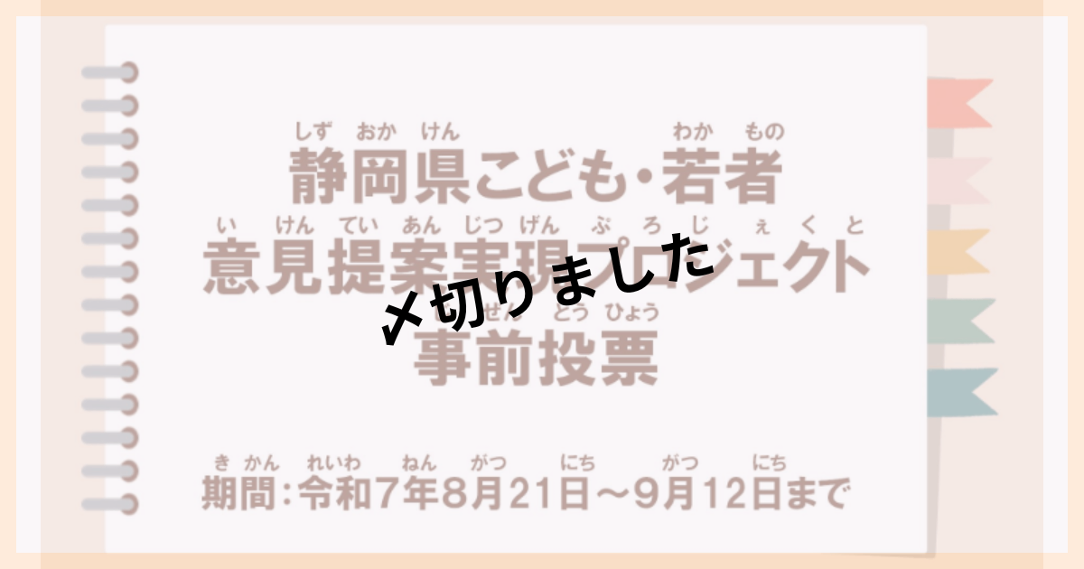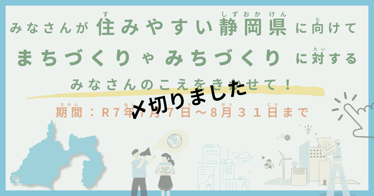 ・2025年7月から、静岡県といろいろな市町が、「未来のまちづくり」や「教育」など、さまざまなテーマについて、こども・若者のみなさんの意見を募集しています。