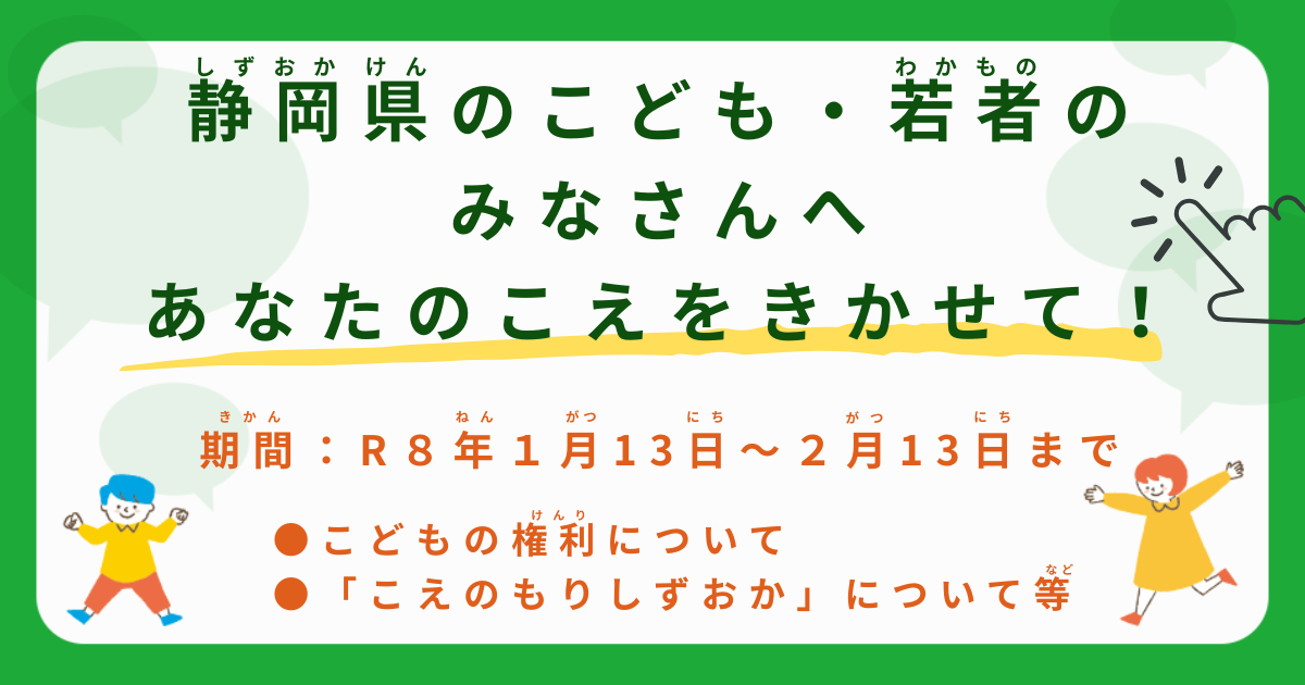 静岡県のこども・若者のみなさんへ「あなたのこえをきかせて!」