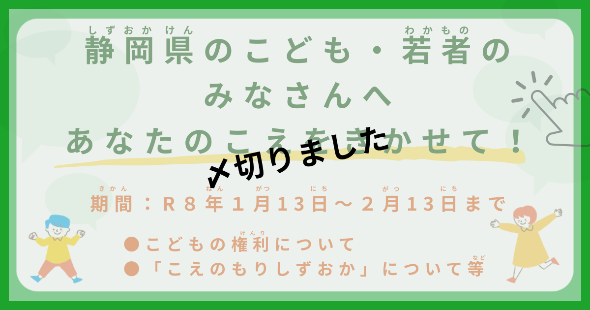 こどもの権利についてや、「こえのもりしずおか」について、みなさんのこえをきかせてください! (2月13日まで)