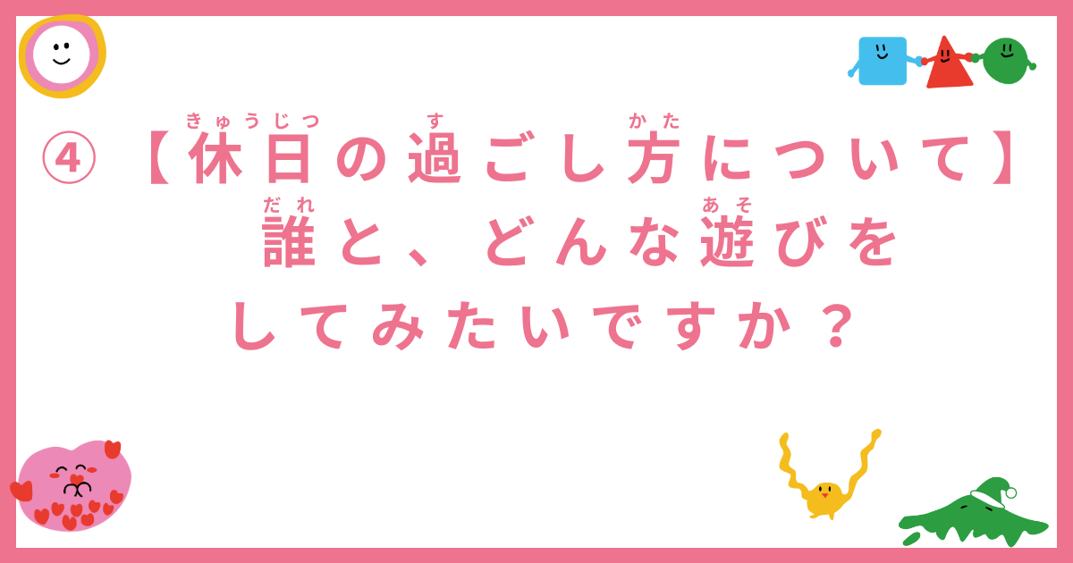 4 休日の過ごし方について:誰とどんな遊びをしてみたいですか?