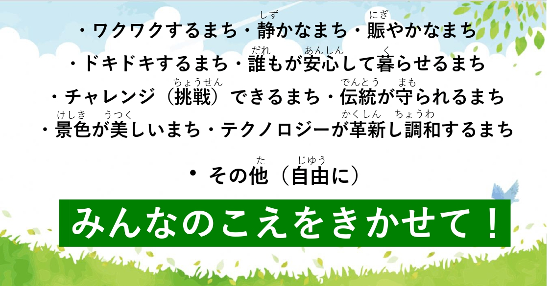 掛川市のまちづくりの計画をつくるにあたってみなさんのこえをきかせて!
