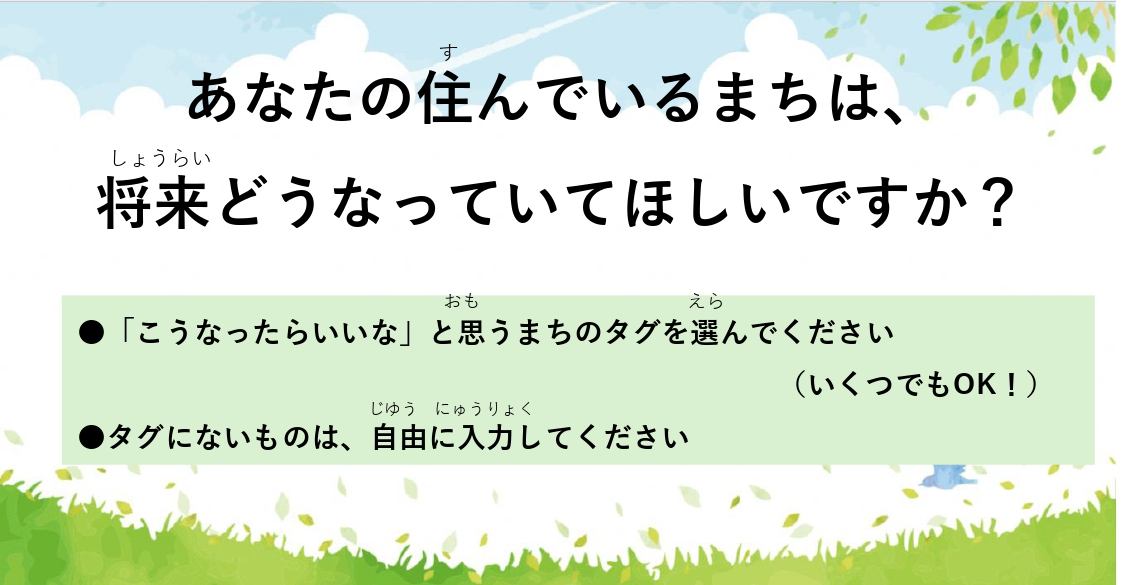 あなたの住んでいるまちは、 将来どうなっていてほしいですか?