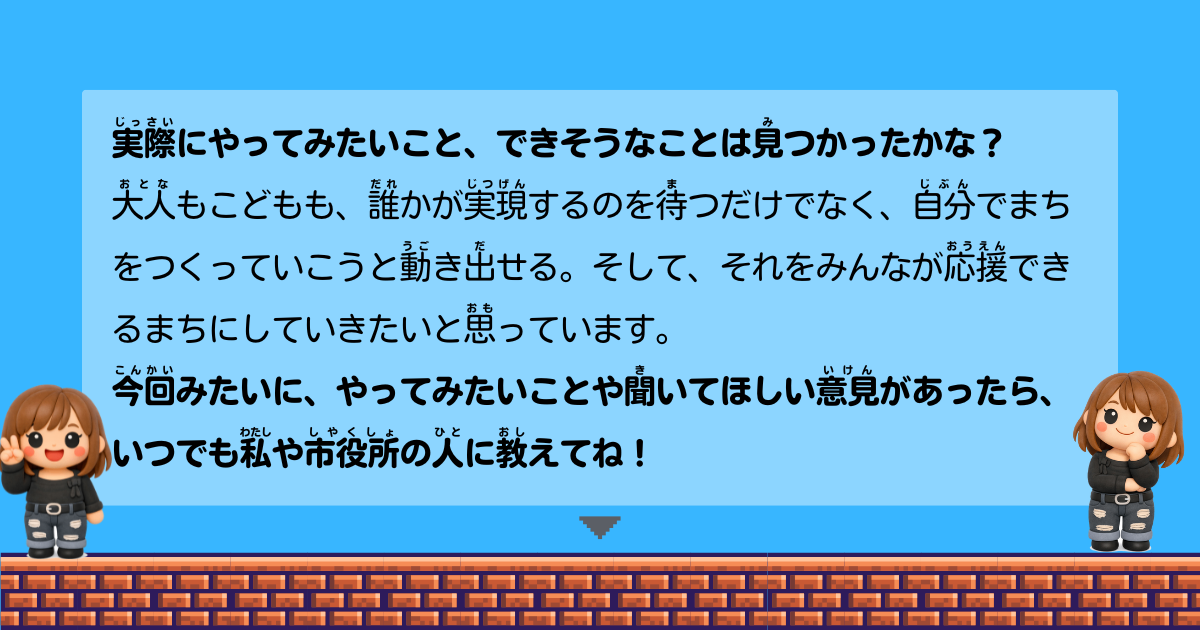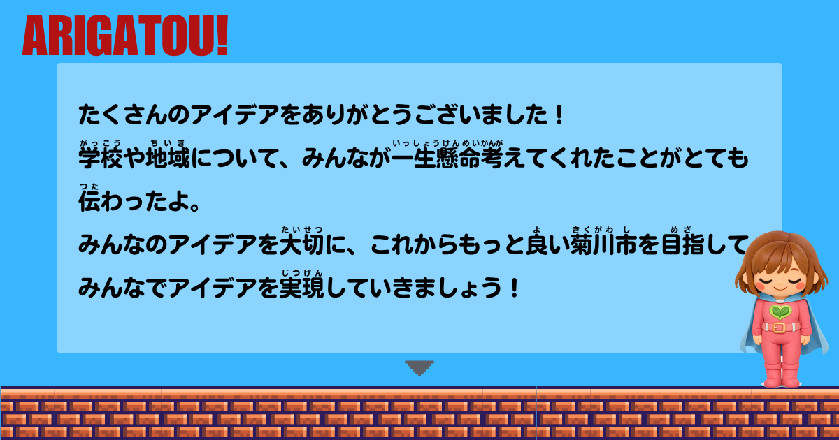 「菊川市の学校や地域を もっと楽しくするアイデアを募集します!」前へ戻る