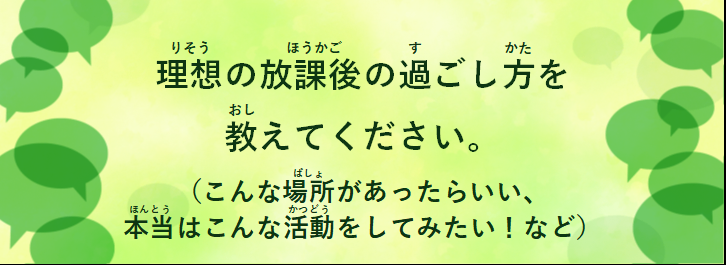 3 理想の放課後の過ごし方を教えてください。(こんな場所があったらいい、本当はこんな活動をしてみたい!など)